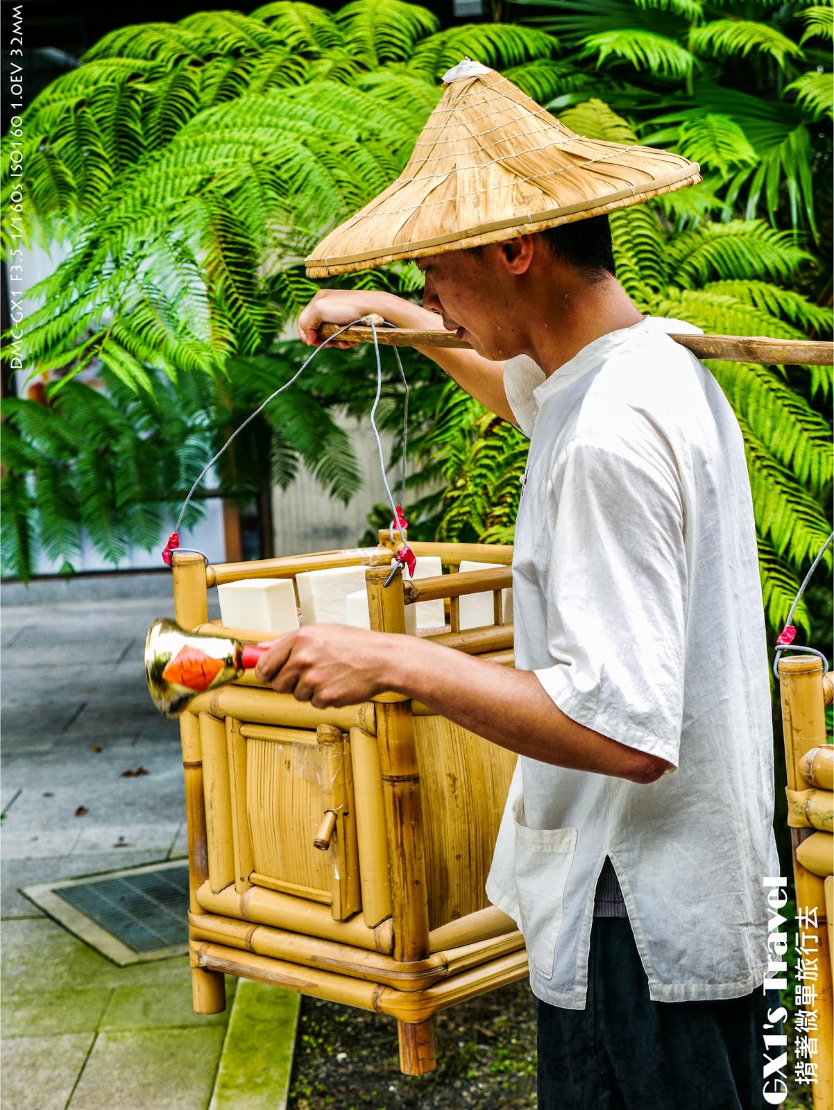 以前時代是擔著扁擔沿街搖鈴叫賣手工做的茶摳,這位大哥也在園區內叫賣。