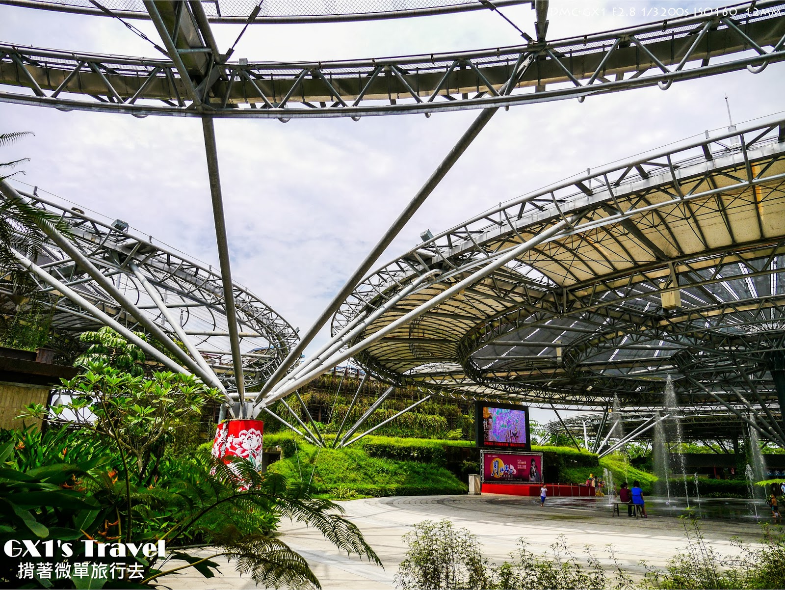 一到六堆文化園區,首先印入眼簾的就是那巨大的斗笠造型的傘架。