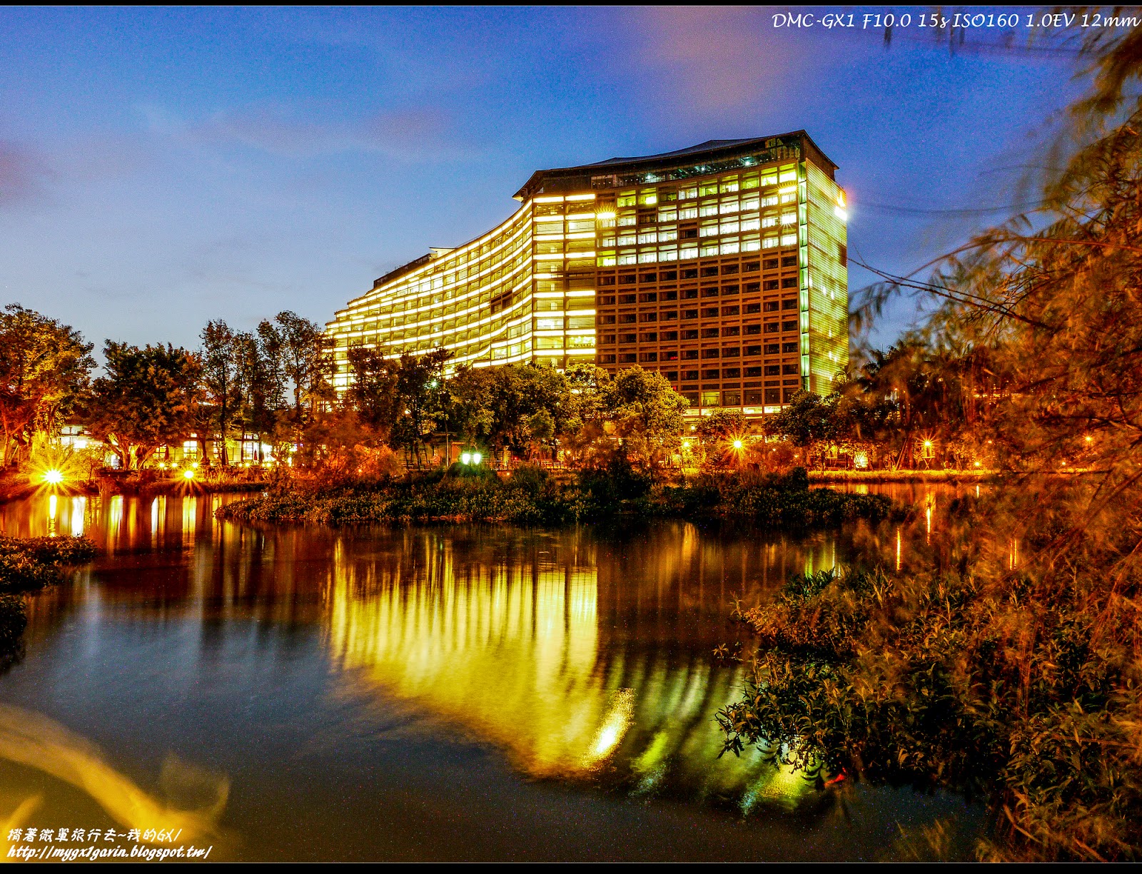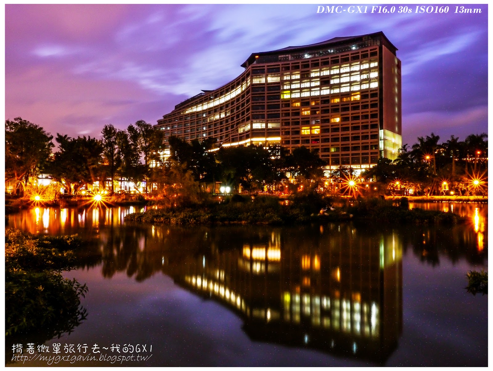 今天是第二天衝景了,但是相機帶了、腳架背了,但是雲台卻沒帶,好旁邊的步道有木頭扶手可以讓我放相機,只是我都把相機背帶抓得緊緊的,避免一不小心相機就去游泳了。沒帶雲台還是堅持衝景,加上被蚊子叮、站了半個多小時,但是這一切都是值得的,因為開燈了,而且也拍到了遠方的天際,微微的燒了起來。