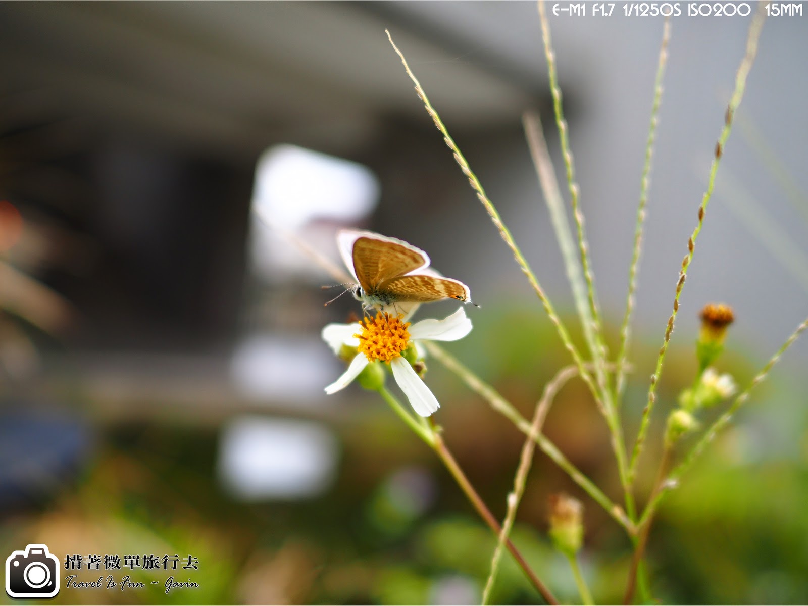 在小花園,這隻蝴蝶就這樣停滯不動,直接拍下去。