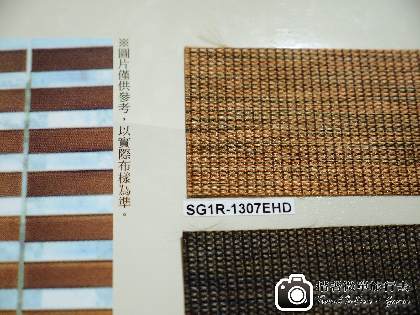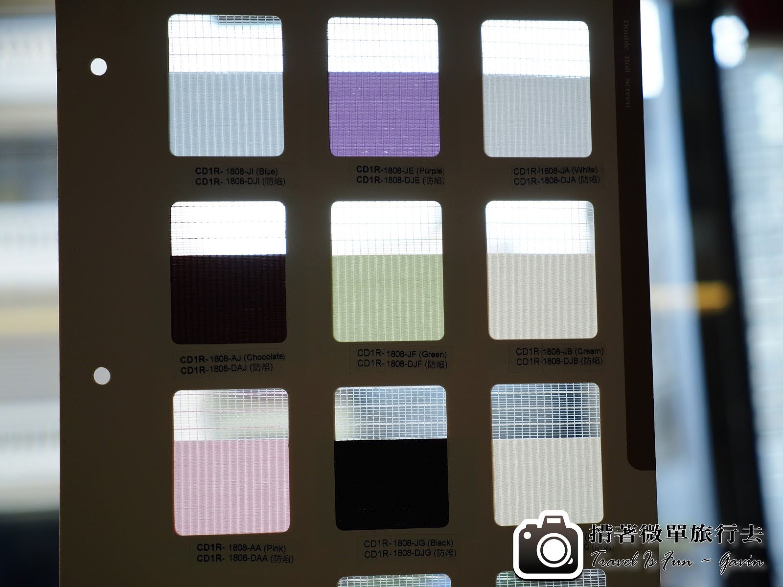 這是調光捲簾的花色,現在看會覺得最上面的剛好,但是如果以透光度還有裝在房間的感覺,就是第二個。法布的蔡小姐就提供我們很好的建議。