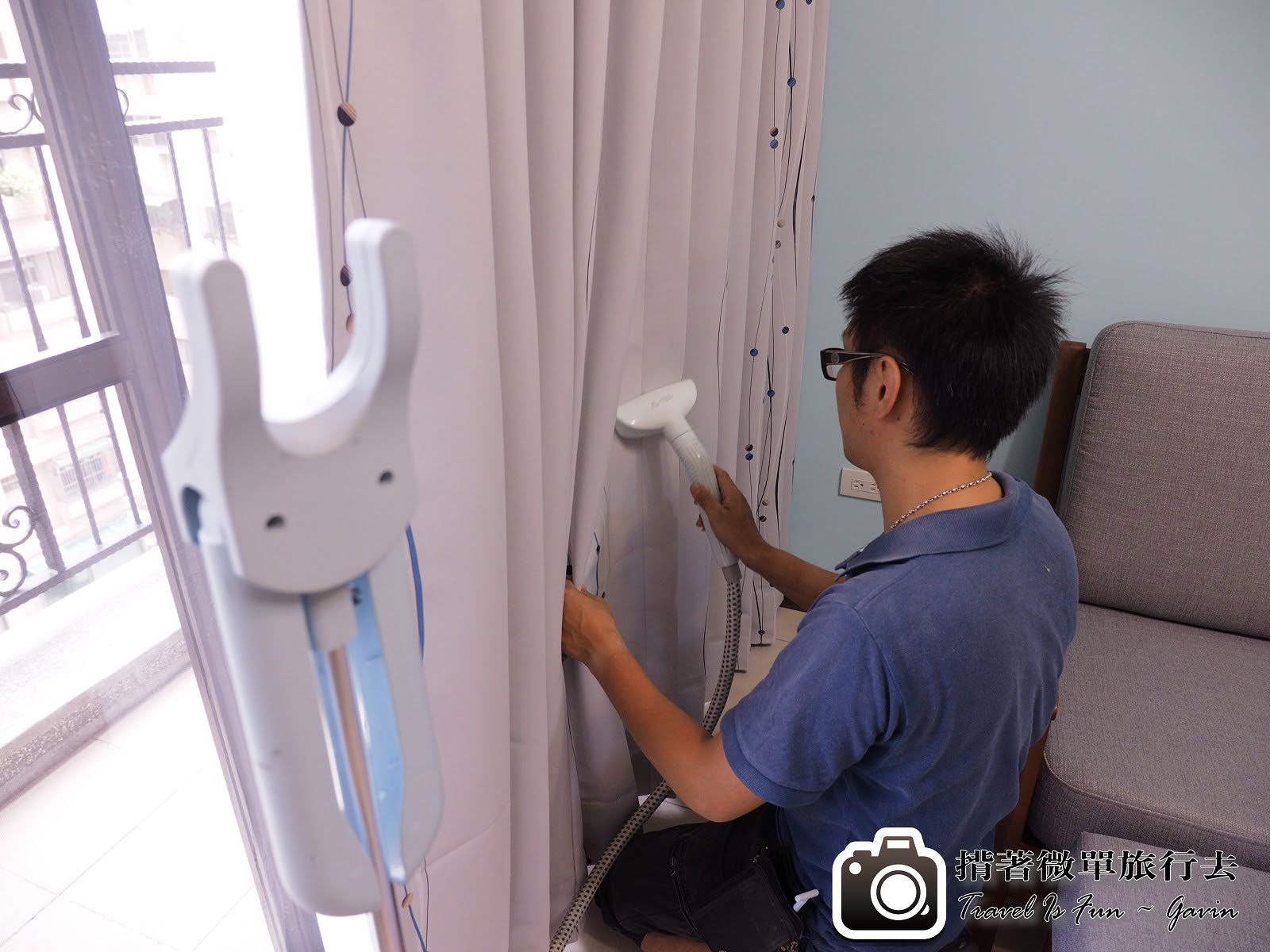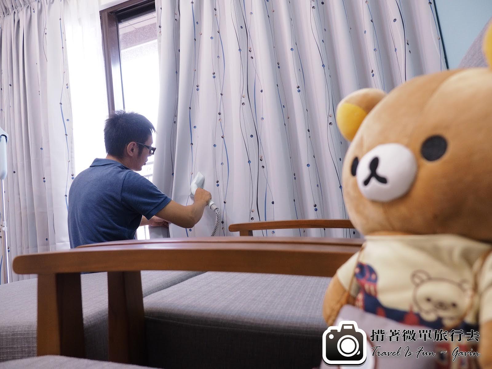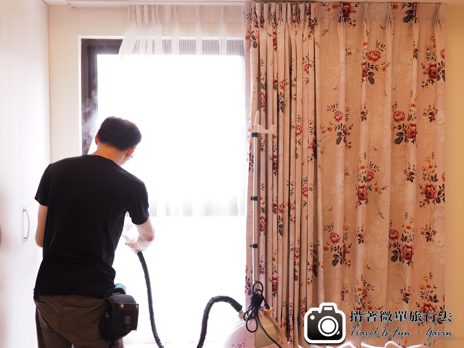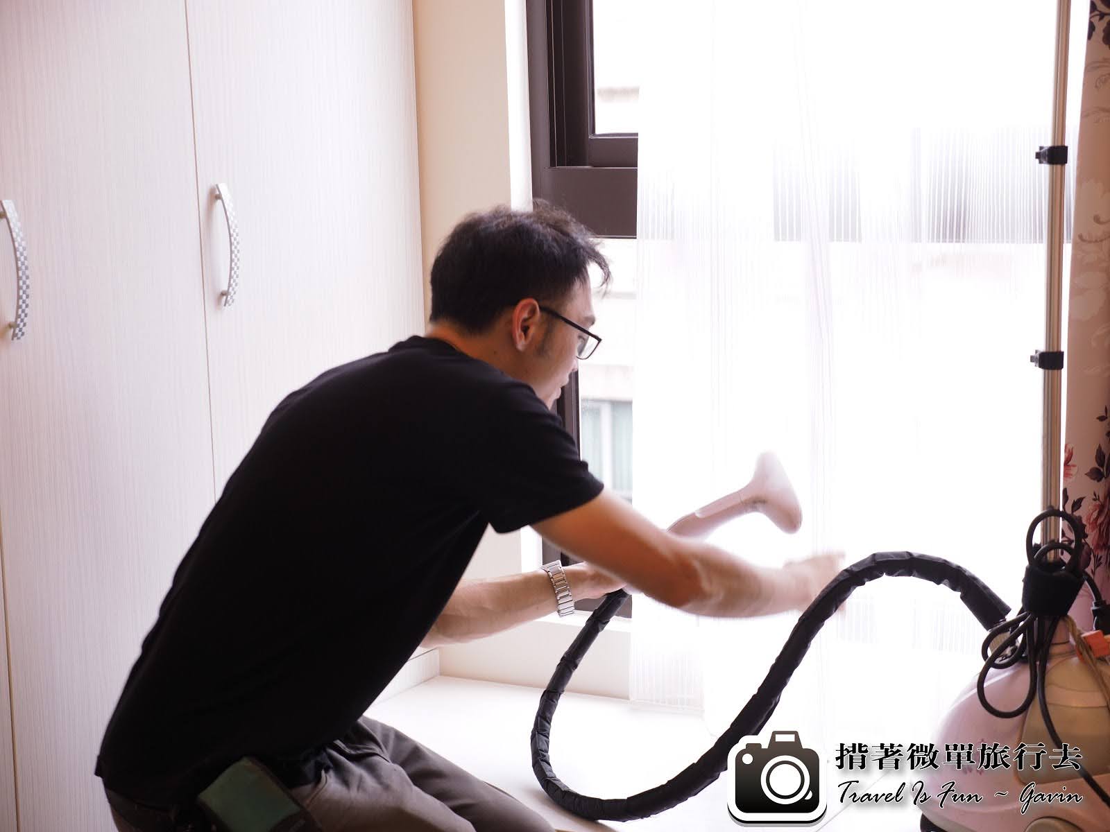 安裝完窗簾之後,還要使用熨斗燙一下,才能讓它更筆直。中間鬧了個笑話,我跟老婆還以為這是吸塵器,哈哈哈。