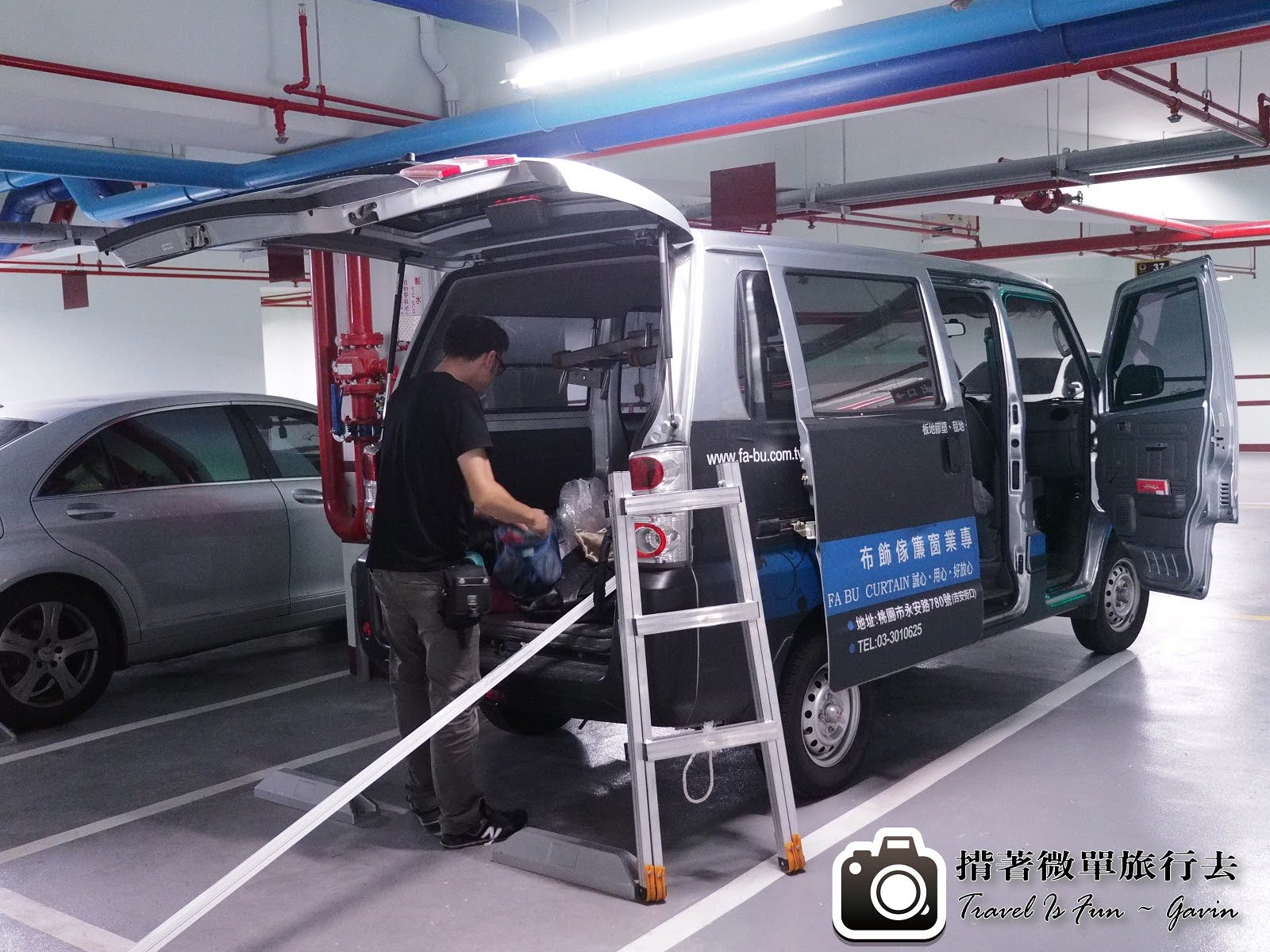 終於到了安裝的當天,法布公司車到了,窗簾準備下貨。