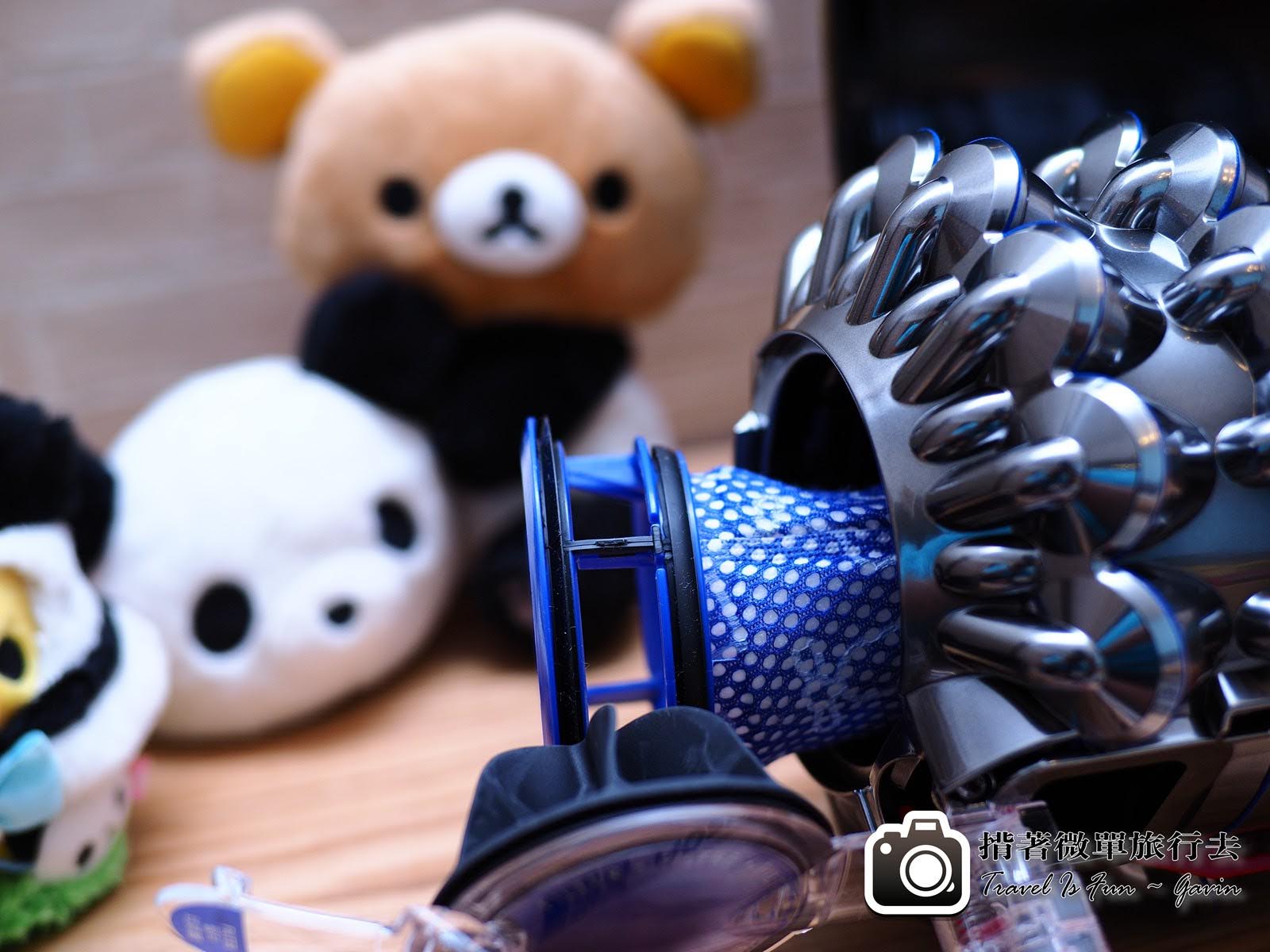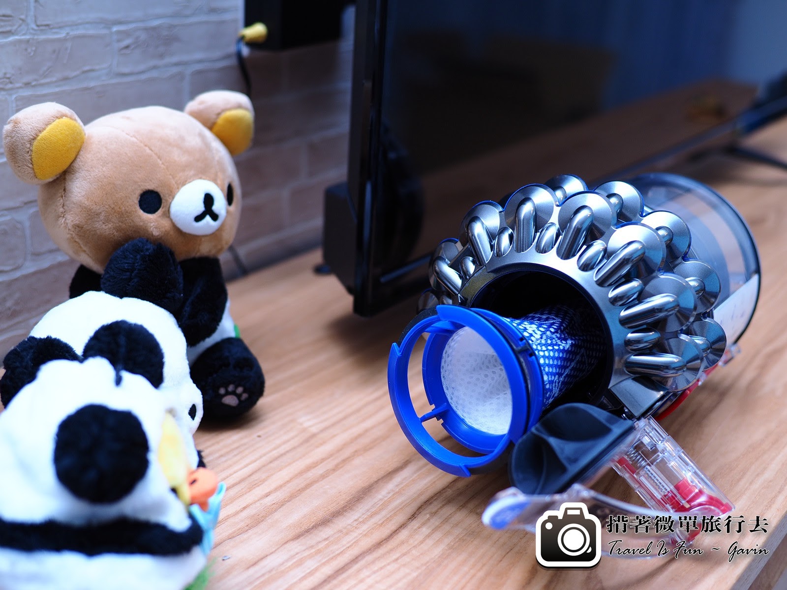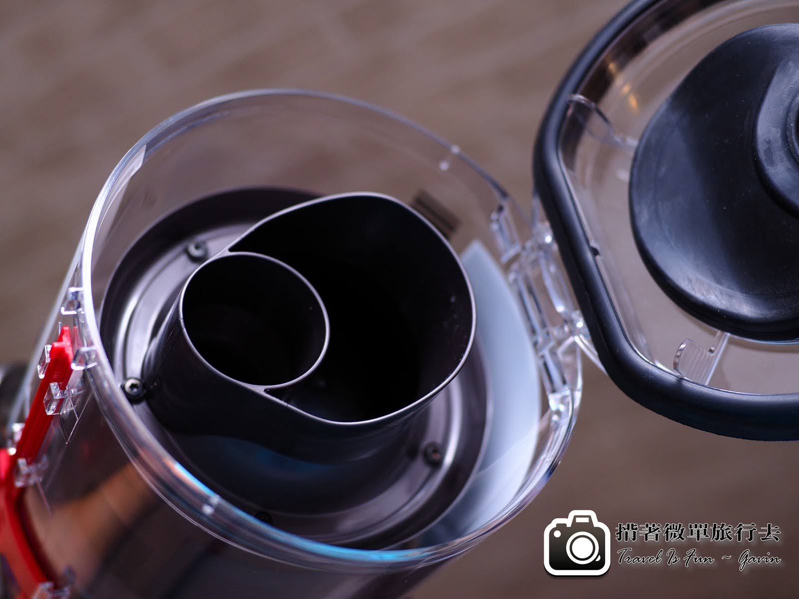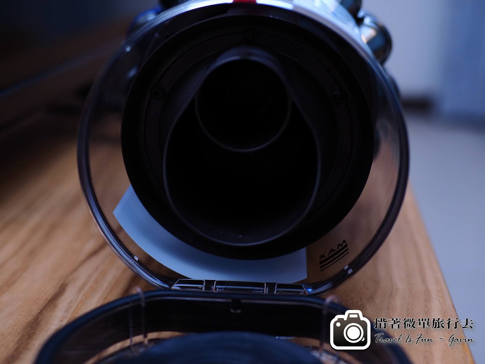 感覺就是很有科技感,有點像加農砲的感覺。DYSON利用雙層圓錐氣旋所產生的高速離心力,將灰塵甩入集塵盒。