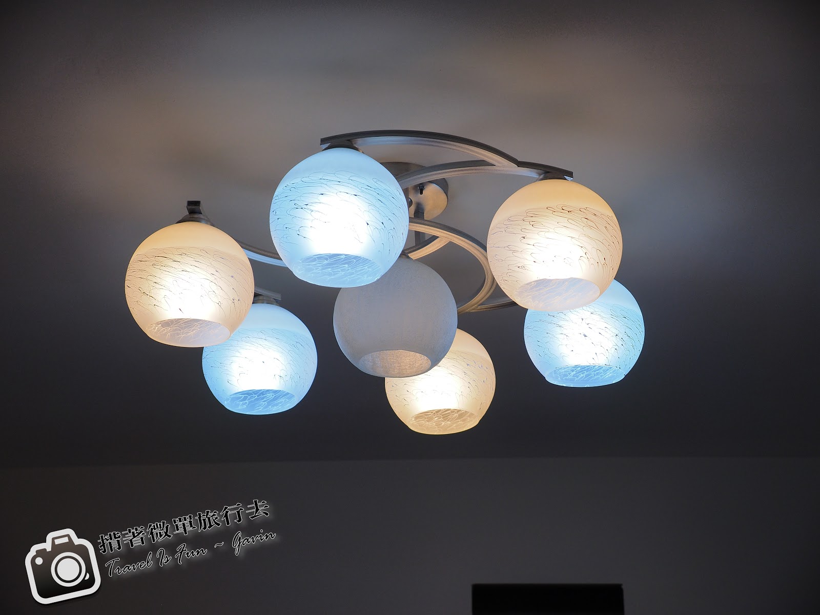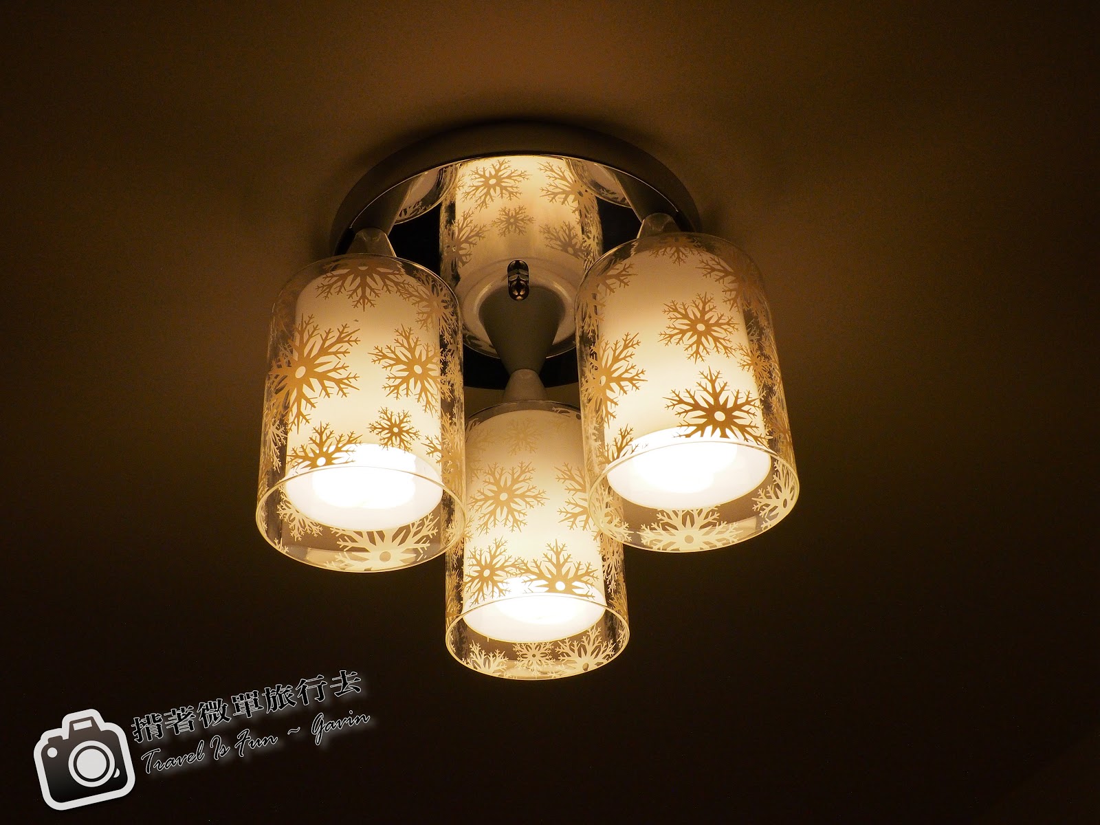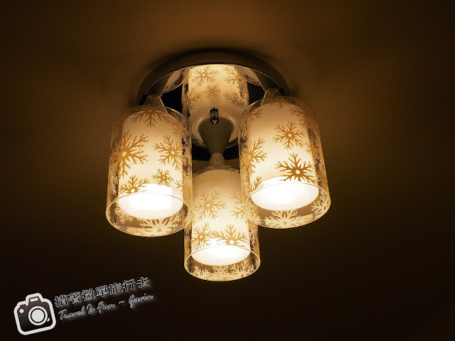 這盞LED燈,是放在一進門的正上方。選的時候店家還讓我看得不同的效果,每盞的亮度都差不多,只是表現出來的花紋不同。