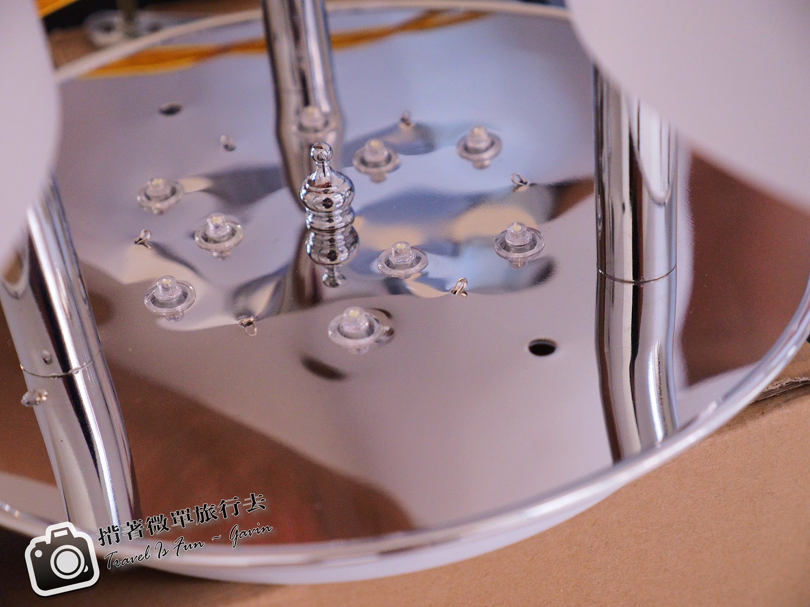 書房的燈具,外面是玻璃裡面是壓克力。這是我放在客廳的拋光石英磚上拍攝,上面還有客廳的燈光反射。