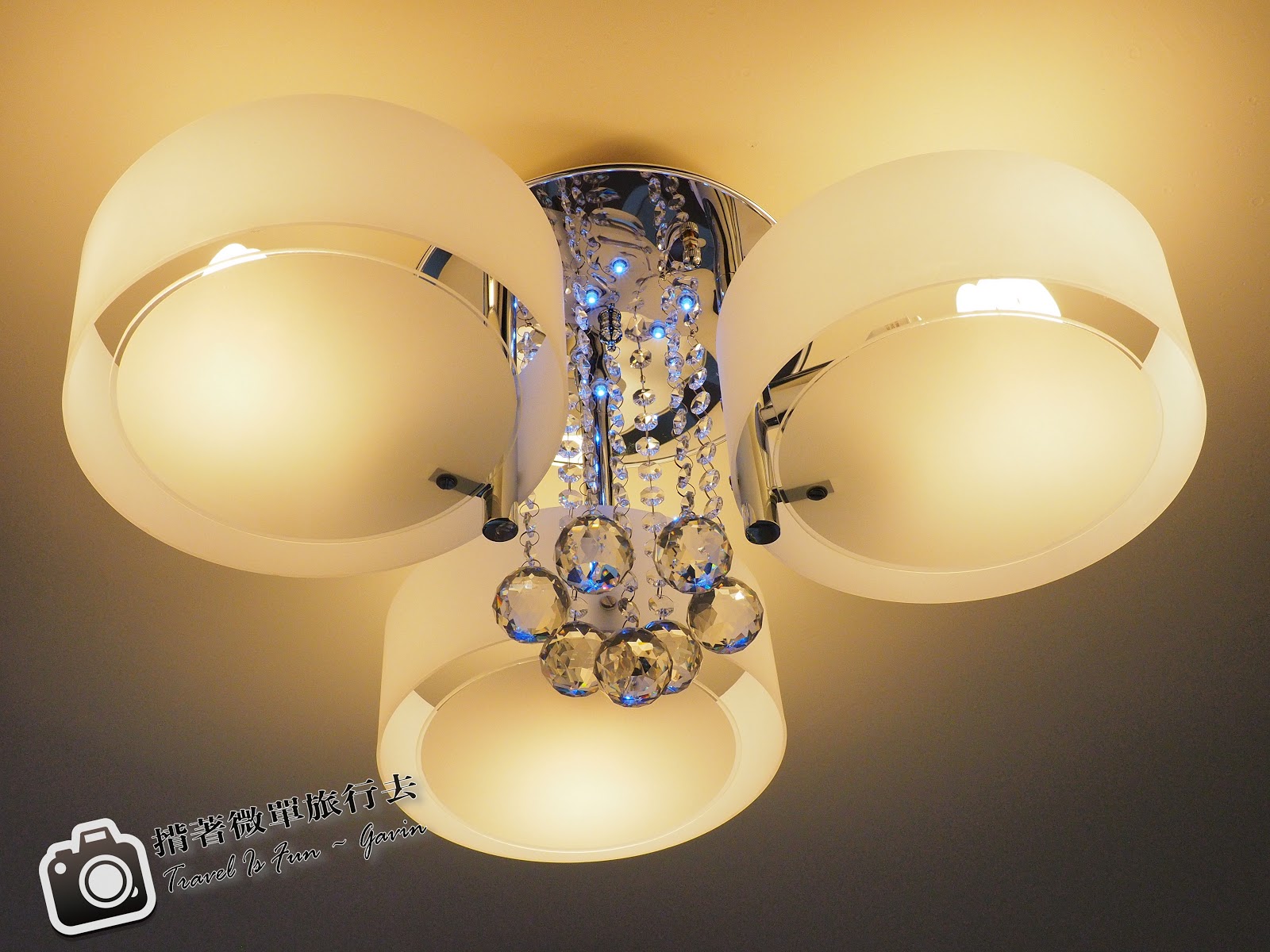 主臥室其實三個燈就夠了,好的店家不會為了多賺錢,要你選擇多燈的燈具。而且有經驗的師傅一看就能判斷是否有壓迫感,原先我對於上面的水晶吊飾是否會造成 壓迫感,師傅有說明,如果有做天花板,他就會建議要把吊飾往上調。但是因為我們天花板高度足夠,所以不需要調整。