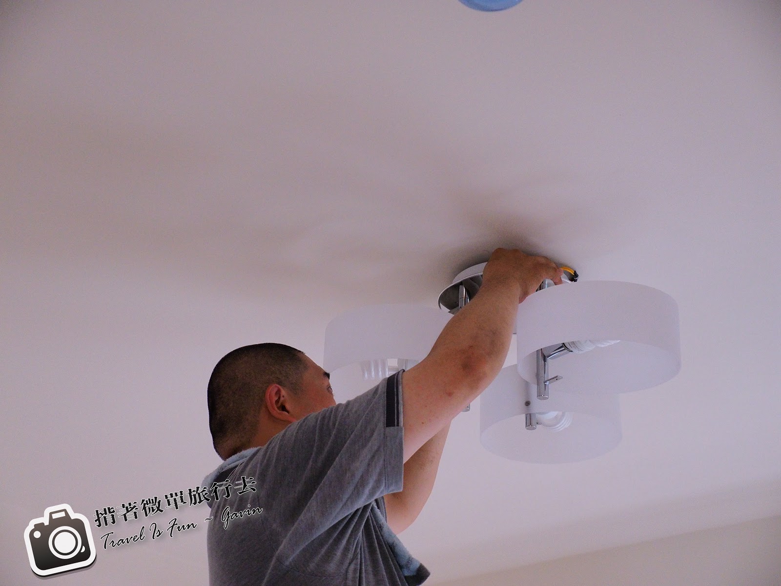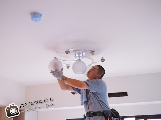 原本安裝燈具是上周,但是因為剛好屋頂天花板油漆部分出現縫隙,所以請建商馬上處理,因此燈具安裝延期到這周。