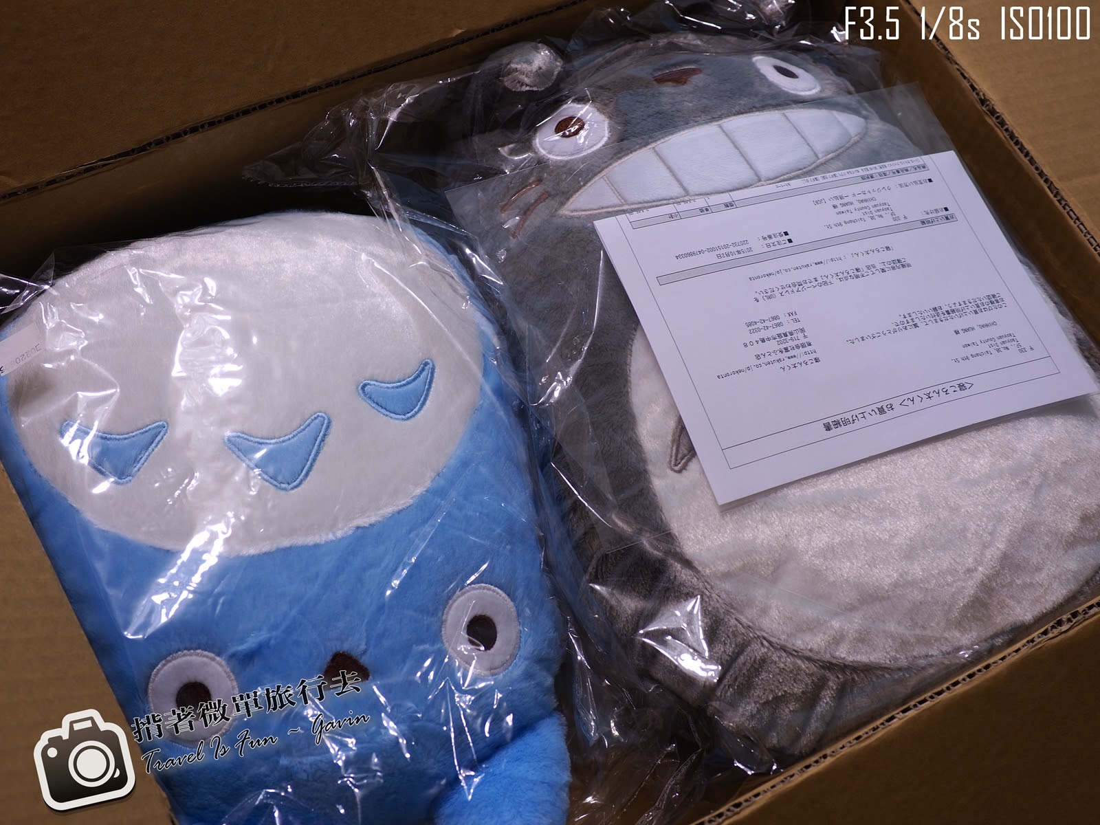這次購入了灰色與藍色的龍貓抱枕,兩隻含完運費共7,910日幣,台幣大約2139元。運費部分,大約是1/3。但是送達速度真的很快,10/5從大阪的店家出貨,10/9已經送到我家。